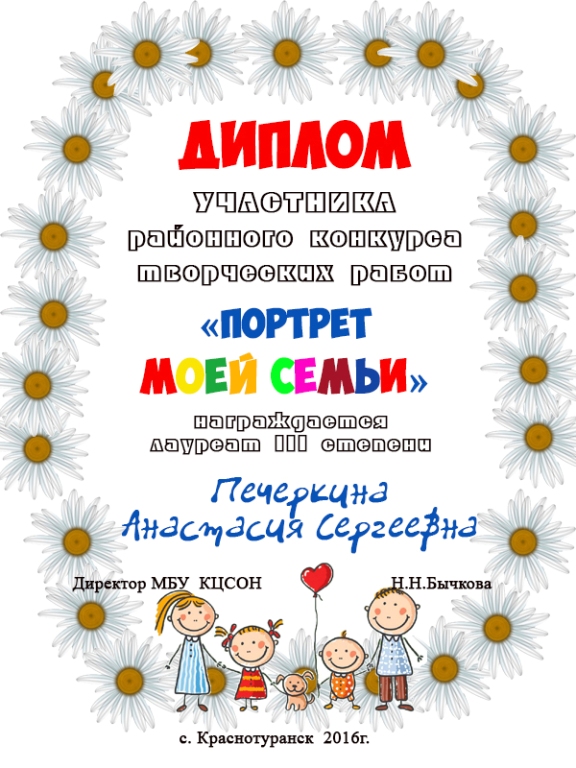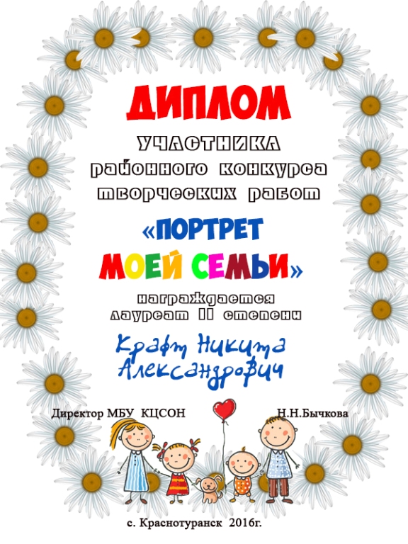 Районного конкурса творческих работ «Портрет моей семьи»
