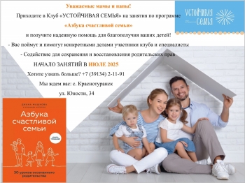 Программа клуба «Устойчивая семья» в КГБУ СО «КЦСОН «Краснотуранский»