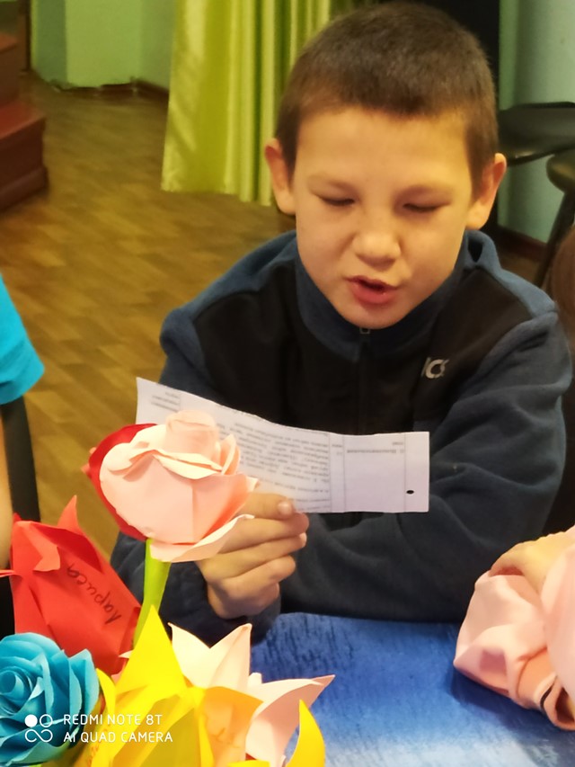 Воспитанники узнали на сколько важен этот праздник и с удовольствием приняли участие в нём. За круглым столом ребята по очереди рассказали о самых лучших качествах своих мам, начиная со слов: "А моя мама самая... ", вспомнили даты рождения мам, угадывали блюда по ингредиентам, входящим, участвовали в других занимательных конкурсах. В завершение вечера ребята зачитали стихи, посвящённые маме и составили букет из бумажных цветов, предварительно написав на каждом имя своей мамы.