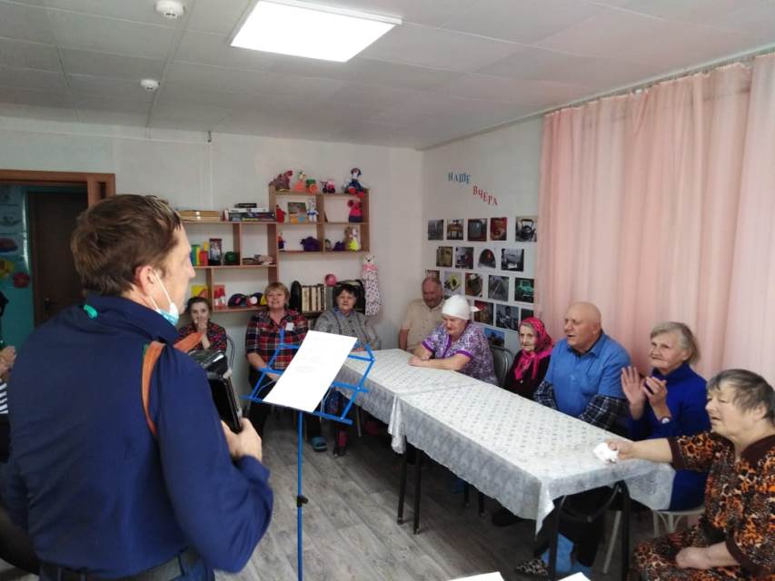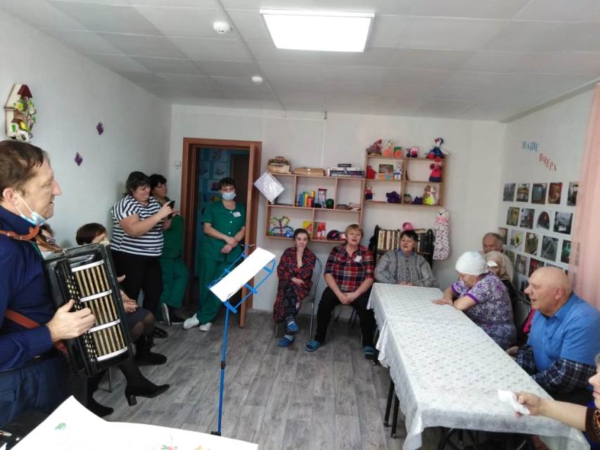 Для проживающих в стационарном отделении была подготовлена развлекательная программа «Ретро-вечер «Песни прошлого» , которая произвела неизгладимое впечатление на пожилых людей. Под аккомпанемент баяна, культорганизатором отделения для них были исполнены песни их далёкой молодости , вызвавшие бурю эмоций – и слёзы, и радость.