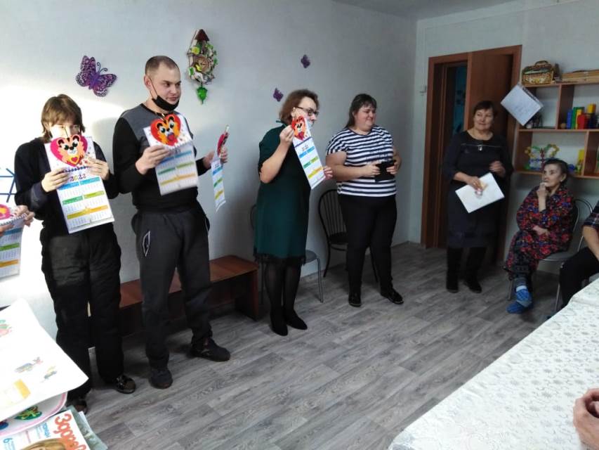 Ну а в завершении мероприятия , молодые люди с инвалидностью , вручили подарочные календари в каждую комнату стационарного отделения , договорившись о следующей встрече в канун Нового года.