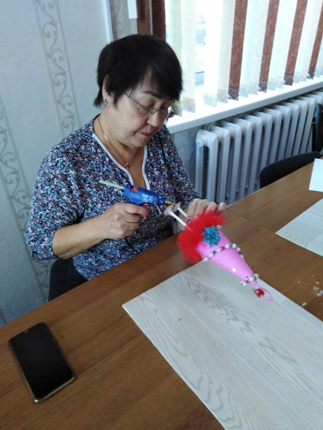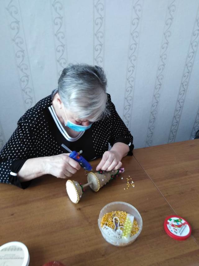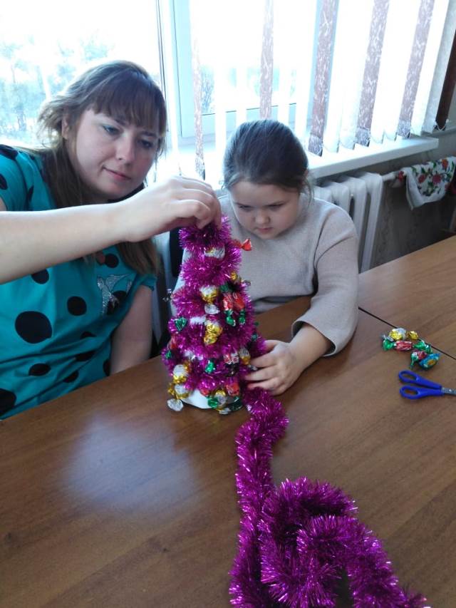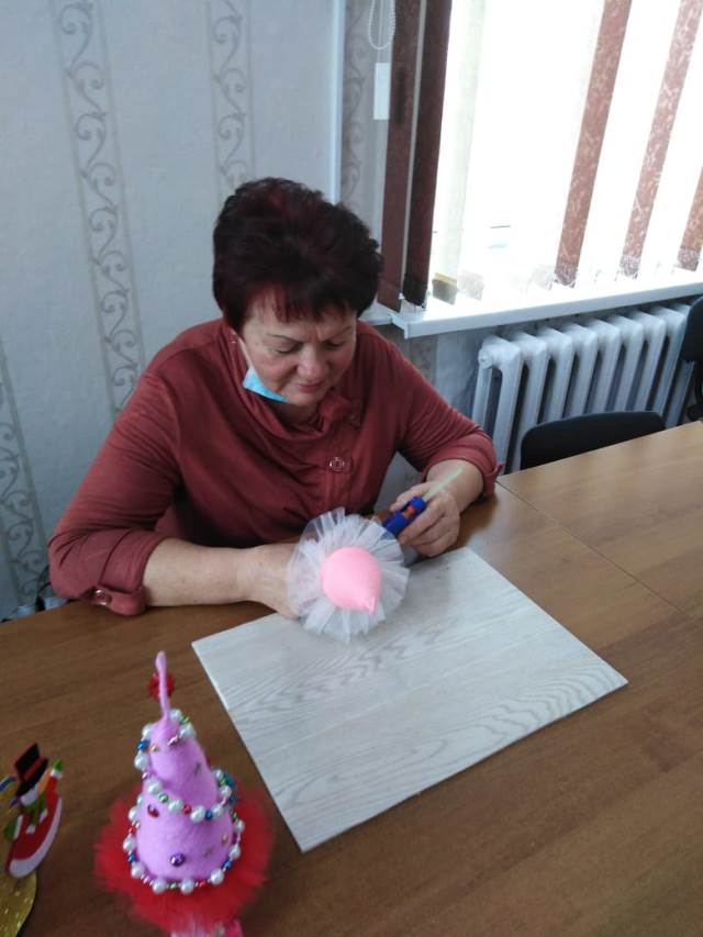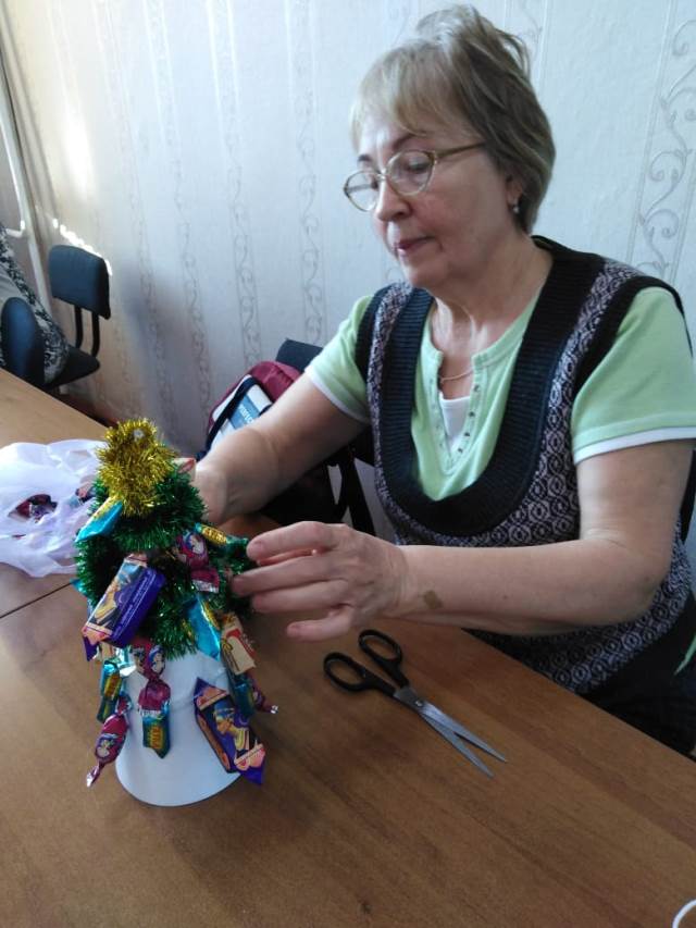 Под руководством инструктора по трудовой терапии , получатели социальных услуг познакомились с технологией изготовления новогодних ёлочек, которые могут служить и украшением новогоднего стола, и стать частью декора дома.