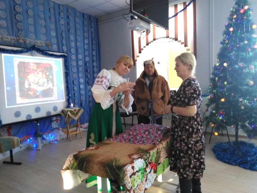 Девицы-красавицы в русских народных сарафанах, ряженые, распевающие разудалые песни под баян вмиг перенесли всех гостей мероприятия в далекое прошлое, когда святочные гадания были важной частью русской обрядовой культуры. Программа была весьма насыщенной: интересные факты из истории зимних праздников, шуточные сценки, песни и, конечно же, сами гадания. В конце мероприятия все вместе украсили рождественскую елку с пожеланиями счастья, удачи и так необходимого всем нам крепкого здоровья!