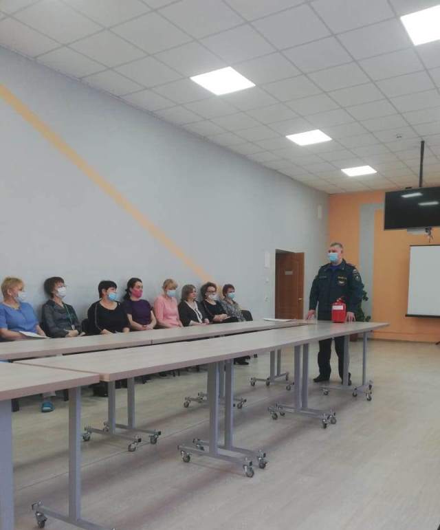 В ходе встречи с работниками учреждения была проведена разъяснительная беседа по применению первичных средств пожаротушения и алгоритму действий сотрудников в случае возникновения пожара , уточнены номера телефонов экстренных служб . В процессе беседы были рассмотрены конкретные примеры действий сотрудников при обнаружении пожара в учреждении , даны рекомендации по проведению профилактической работы с получателями социальных услуг.
