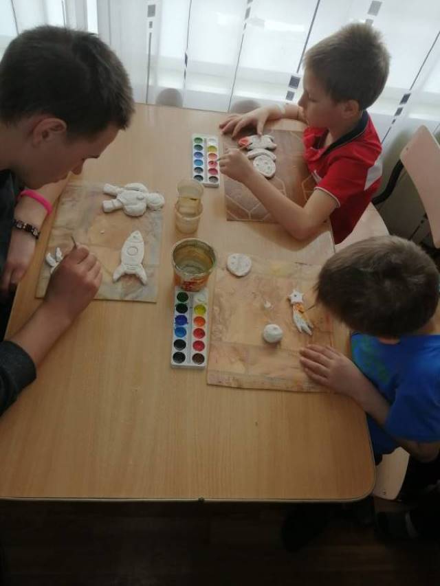 Воспитанники социально-реабилитационного отделения для несовершеннолетних КГБУ СО «КЦСОН «Краснотуранский» приняли участие в ряде мероприятий, посвященных празднованию Дня космонавтики. Для ребят был проведен познавательный час «Космос» с показом видеоролика о жизни космонавтов на орбитальной станции. Затем воспитанники отправились в виртуальное путешествие по МКС, познакомились со станцией, строением скафандра, образом жизни и питания космонавтов. На следующем творческом задании ребята лепили из соленого теста, рисовали, делали аппликации из пластилина ( пластилинография) на космическую тематику.