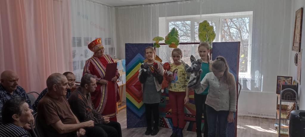 В течение апреля 2022 г. ежедневно проводились разнообразные тематические мероприятия с проживающими. Мероприятия подготавливаются с учётом потребностей и пожеланий получателей социальных услуг , как силами специалистов отделения, так и с привлечением волонтёров и специалистов полустационарного отделения. Самыми яркими и запоминающимися мероприятиями месяца стали – знакомство с православной культурой в канун праздников Благовещение, Вербное воскресение и Пасха , «Встреча со сказочницей. Чтение сказки П.П.Бажова «Серебряное копытце»», тематический вечер ко Дню космонавтики «Улыбка Ю.Гагарина» , встреча с участниками детской театральной студии «Веснушки» - просмотр кукольного спектакля «Заячья избушка».