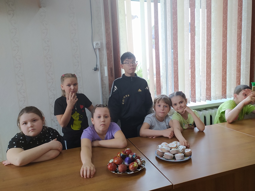 Гости и участники детского семейного клуба «Тёплышко» также не обошли этот праздник стороной. Для них прошла познавательно-развлекательная программа «Пасхальная палитра». Началось мероприятие с просмотра видеоролика об истории возникновения праздника, о его обрядах и традициях. Затем ребята самостоятельно расписывали каждый своё Пасхальное яйцо. После этого настало время для самого интересного - традиционных пасхальных игр и чаепития с крашеными яйцами и пасхальными куличами.