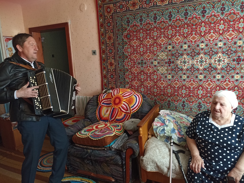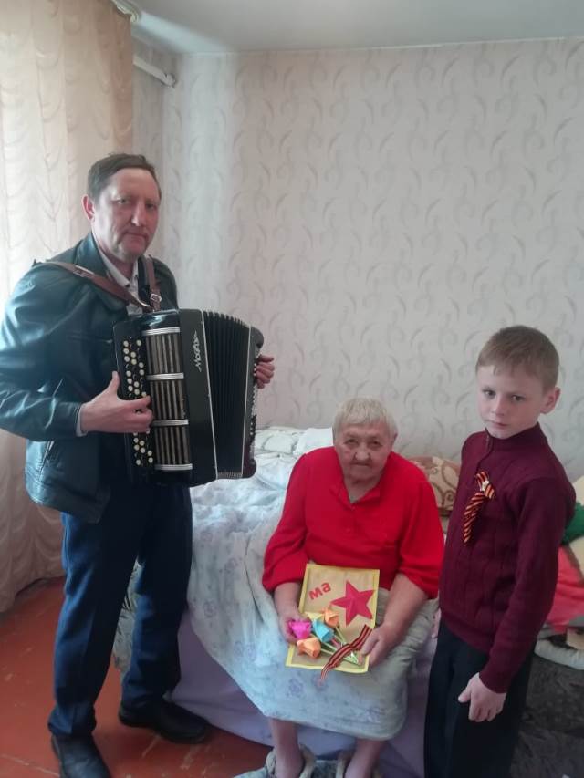 05.05.2022г. в преддверии празднования 77 годовщины со дня Победы в Великой Отечественной войне, заведующими отделений социального обслуживания на дому КГБУ СО «КЦСОН» Краснотуранский» Газиевой В.Н., Сорокиной Е.С, Лелюх Т.Г и культорганизатором Есипенко П.И., совместно с воспитанниками социально-реабилитационного отделения для несовершеннолетних, поздравили с Днем Победы участников ВОВ, вдов и тружеников тыла находящихся на социальном обслуживании. Алексеев Глеб и Потапова Ольга прочитали стихи для ветеранов, Есипенко П.И. исполнил песню военных лет «Катюша», а также были вручены памятные открытки, изготовленные ребятами, тем самым выражая уважение к ветеранам и отдавая дань памяти павшим на поле боя. Не смотря на волнение ребят, их добрые слова до слез тронули пожилых людей. Ветераны рассказали о своей жизни в годы войны и пожелали ребятам хорошей учебы и Мира на земле!