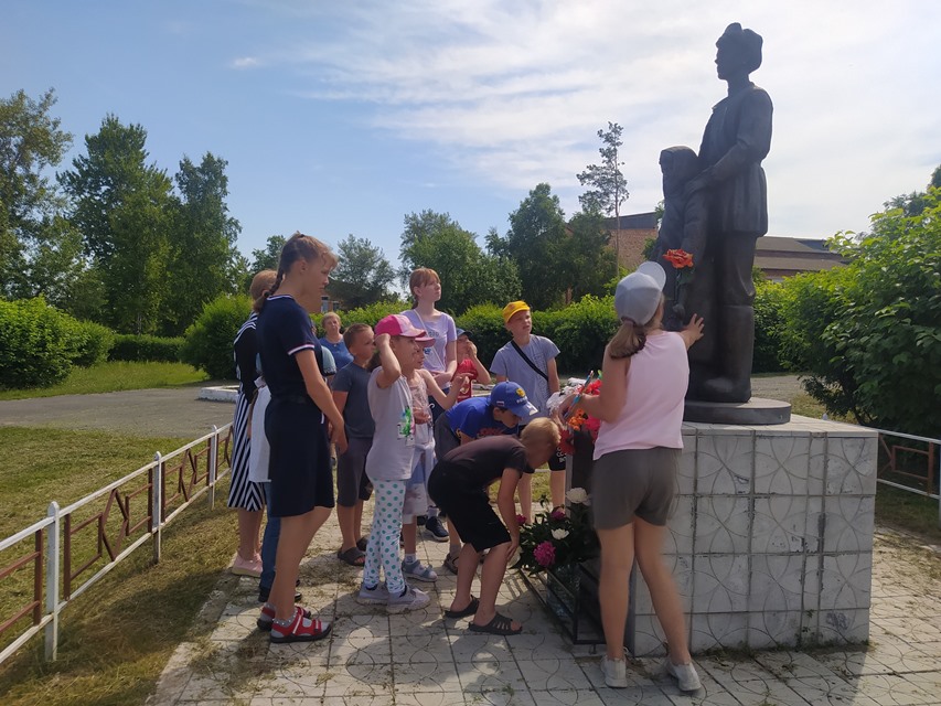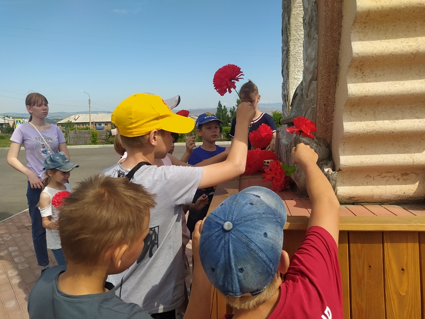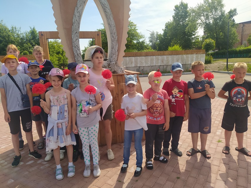 Дети читали стихи о войне, слушали военные песни, почтили память павших в борьбе с фашизмом минутой молчания. У памятника Вечного огня возложили цветы. Зажгли «Свечу памяти» как вечный живой символ огня и оберег от агрессии в любом проявлении.
