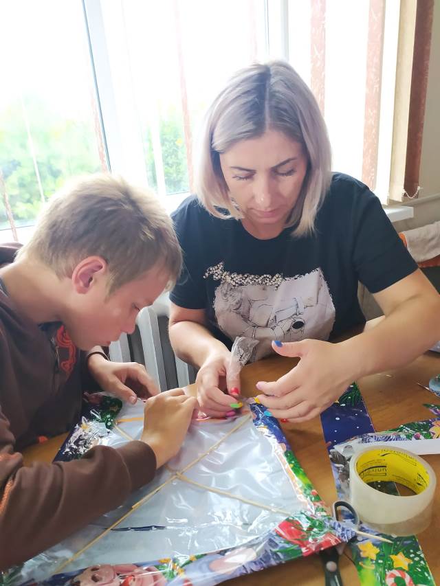 Чтобы змеи взметнулись ввысь необходимы: терпение, фантазия, ловкость, умелые руки и, конечно же, надёжное плечо взрослого, который всегда рядом в нелёгком деле. Так и на нашем празднике специалисты отделения и родители помогали детям мастерить игрушки.