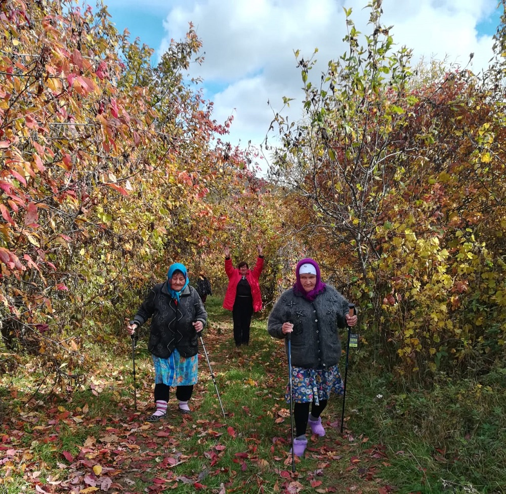 Инструктор по адаптивной физкультуре Сараева С.А. организовала оздоровительную часть программы: был проведен комплекс дыхательной гимнастики и упражнения для общего укрепления организма. Выделили время и для занятия скандинавской ходьбой.