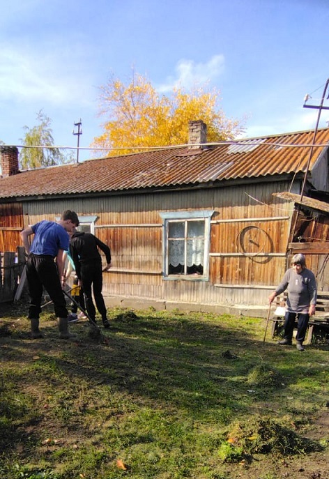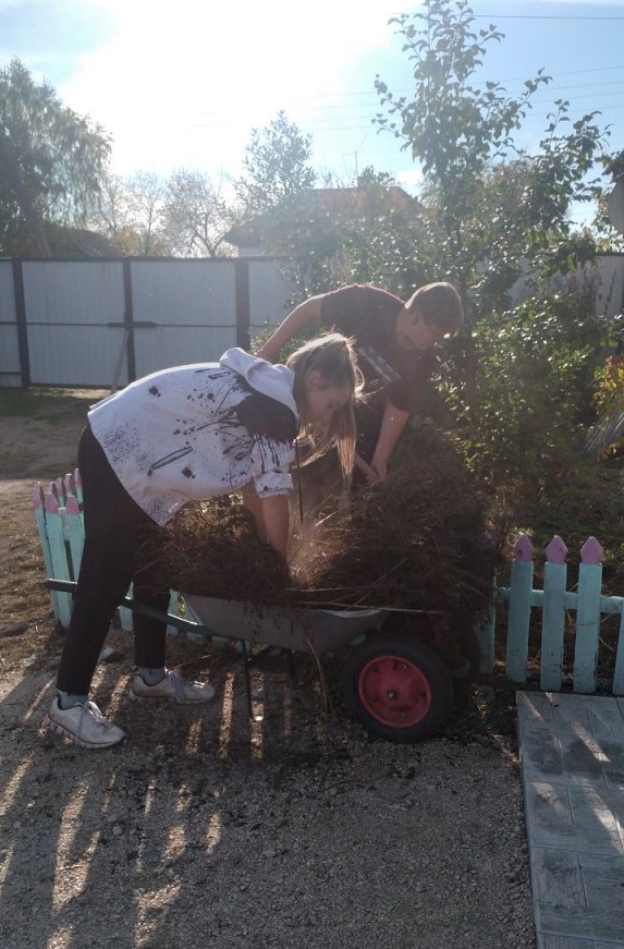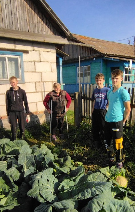 - В д. Николаевка семейной паре Дорошенко Т.В. и А.Ф. ученики 7-го класса очистили огород от ботвы, палисадник от увядших цветов.