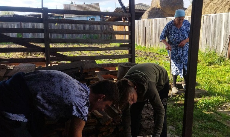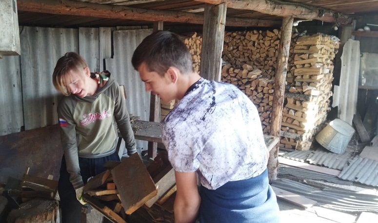 - Также в с. Восточное ученики 8-го класса помогли Величко З.М. сложить заготовленные на зиму дрова.