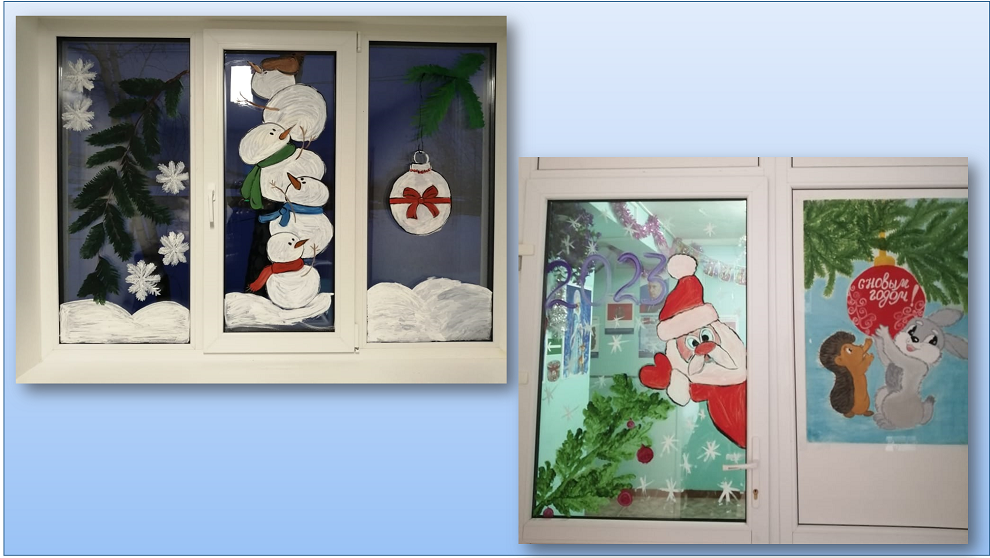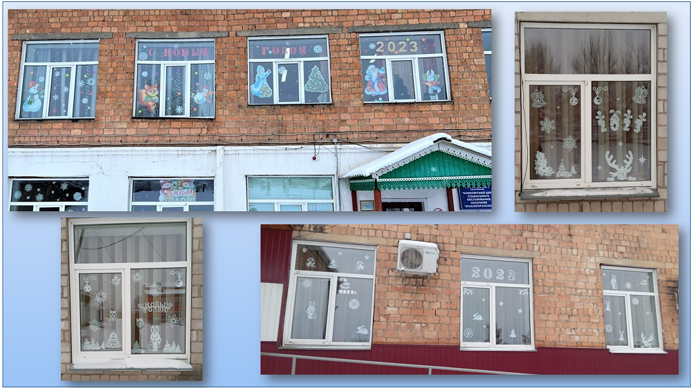 С 05 декабря 2022 по 08 января 2023 в рамках Всероссийской акции «Новый год в каждый дом запущен флешмоб творческого оформления окон #НовогодниеОкна2023.