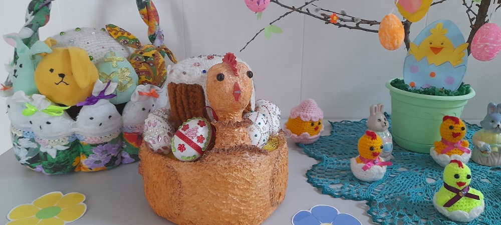 13 апреля прошел фольклорный праздник для детей «В гостях у Курочки Рябы» и мастер-класс с участием серебряных волонтеров «Декорирование Пасхальных яиц в технике декупаж».
