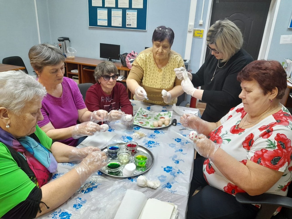 14 апреля состоялось познавательное мероприятие «Светлое Христово воскресение» для граждан пожилого возраста, в ходе которого совершили виртуальное путешествие в Музей Фаберже. Также прошел мастер-класс по окрашиванию радужных пасхальных яиц.