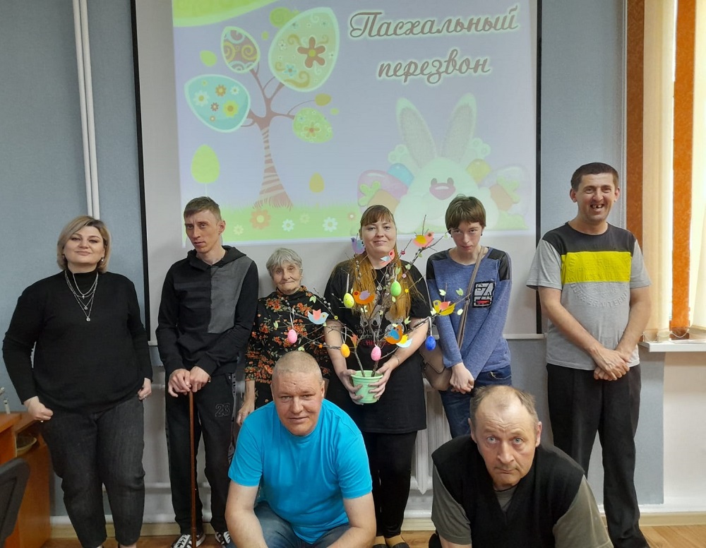 11 апреля в рамках «Академии нескучных затей» прошло практическое занятие для граждан с ментальными и когнитивными нарушениями. Перед тем как приступить к практической работе, участники занятия вспомнили историю праздников Вербное воскресенье и Пасха, поговорили о главных их атрибутах – о чудесном преображении первого пасхального яйца и почему именно «вербное» воскресенье. После чего приступили к созданию чудо-дерева с диковинными птицами и декором в виде ярких пасхальных яиц. Эта коллективная работа стала украшением выставки «Пасхальный перезвон», оформленной в социально-реабилитационном отделении.