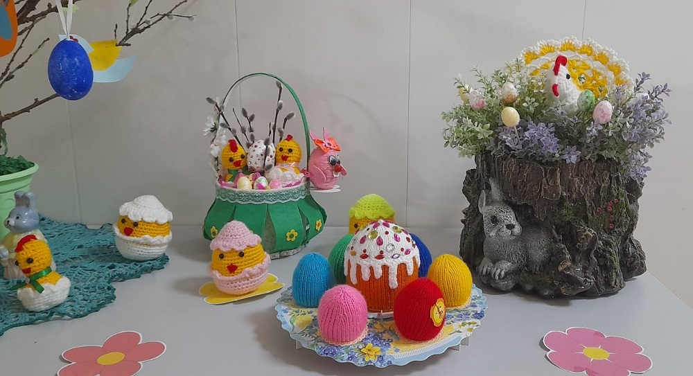 В выставке «Пасхальный перезвон» также приняли участие рукодельницы из кружка «Все для дома своими руками», детской студии «Рукодельницы» и юные художники изостудии «Волшебная кисточка».