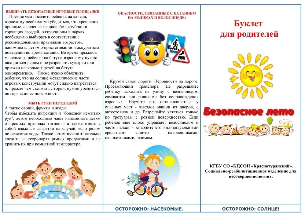 25 мая воспитатели социально-реабилитационного отделения для несовершеннолетних КГБУ СО «Комплексный центр социального обслуживания населения «Краснотуранский» совместно с воспитанниками отделения и их другом мышонком Плюшем провели акцию «Безопасное лето», задачей которой было информирование населения об опасностях, которые подстерегают детей в летний период и предупреждение экстренных ситуаций. Ребята раздавали буклеты прохожим и рассказывали о мерах предосторожности, которые необходимо соблюдать во время летнего отдыха.