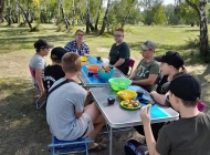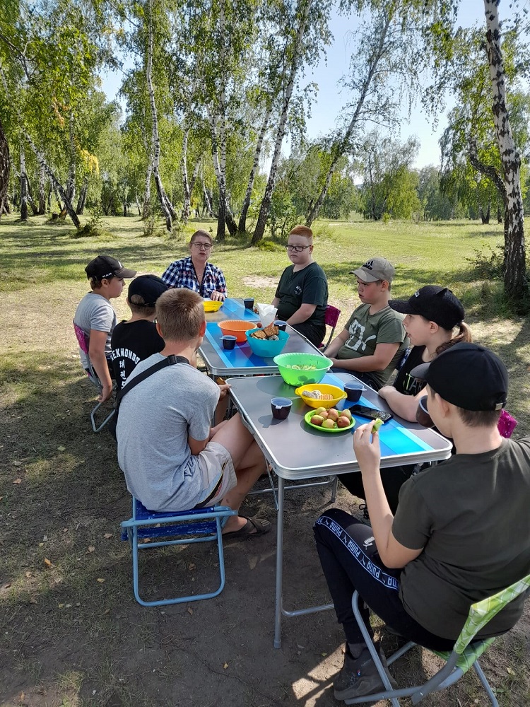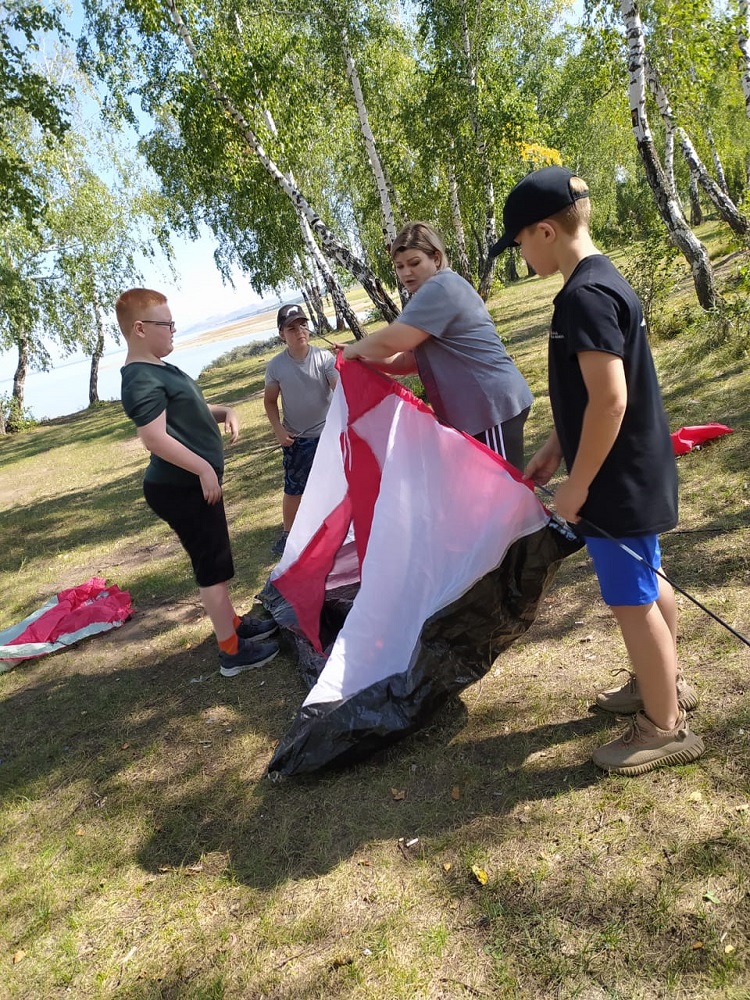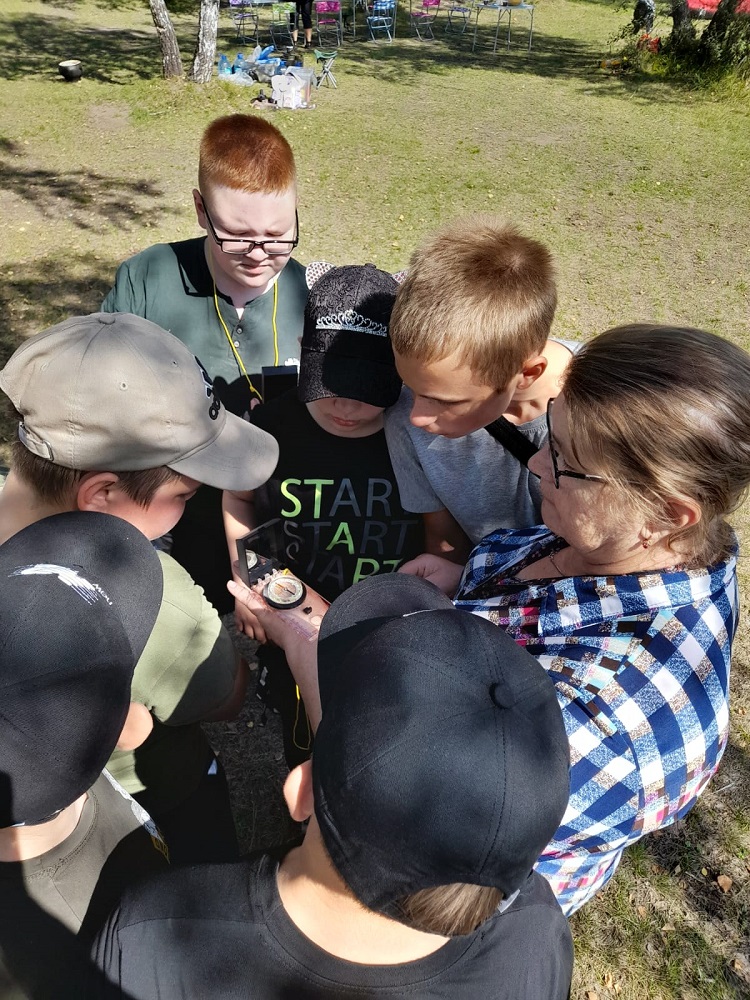 Юные туристы учились ориентироваться на местности с помощью компаса, собирали палатки, разжигали костер. Приготовлением настоящего походного обеда - ухи занимались постоянные участники наших походов - семья Ирины и Виктора Кондаковых. За что им огромное спасибо.