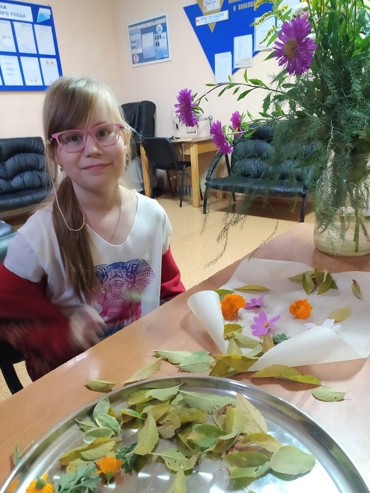 Специалисты отделения организовали для детей разнообразную программу: веселые конкурсы, задания на эрудицию, игры на сплочение. Также ребята узнали, что такое гербарий, какие растения для него подходят и как его лучше хранить. Закончился праздник творческим мастер-классом по составлению осеннего букета. Работа с природным материалом доставила участникам массу положительных эмоций, да и как иначе, ведь разноцветие осенней листвы действительно волшебно.