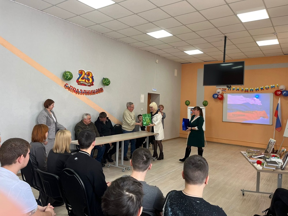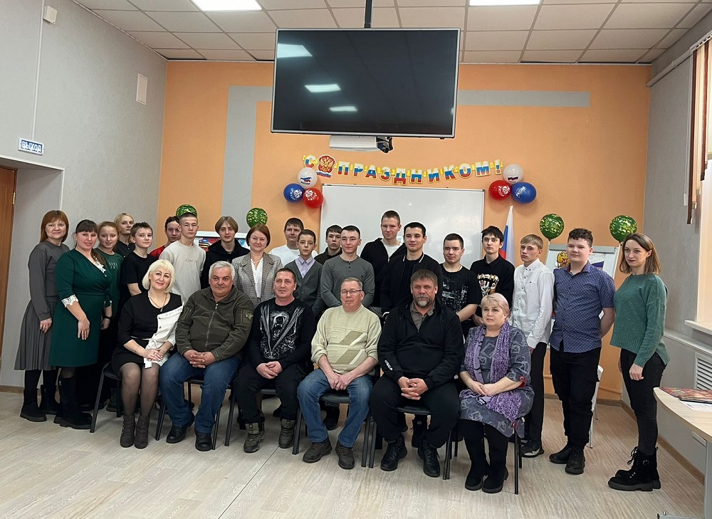 22.02.2024 г. в КГБУ СО «КЦСОН «Краснотуранский» состоялось торжественное мероприятие «Герои нашего времени» для учащихся Краснотуранской СОШ, организованное куратором клуба «Побратим» и социальным координатором филиала Государственного фонда поддержки участников СВО «Защитники Отечества» по Красноярскому краю. Почетными гостями встречи стали ветераны боевых действий Чечни и специальной военной операции.