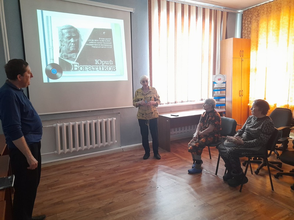 29.03.2024г. прошел очередной ретро-вечер «Маршал советской песни», посвященный творчеству народного артиста УССР Ю.И. Богатикова. Участники программы с большим интересом окунулись в историю творческого и жизненного пути артиста, посмотрели архивные фотографии и видео. Прослушав песенные хиты «Давно не бывал я в Донбассе», «Давай поговорим», «Весна 45го» из репертуара великого и неповторимого Юрия Богатикова, мы еще раз вспомнили, как звучит его мощный, «безразмерный», многогранный баритон.