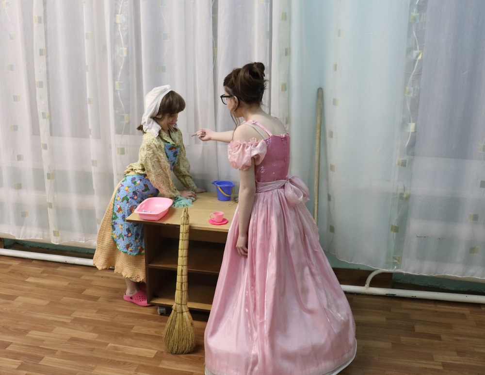 Для участия в конкурсе выбрали поучительную и доступную для восприятия детей всех возрастов сказку Шарля Перро «Золушка». Занятия в рамках конкурса проводились в течение 3-х дней и были разделены на три этапа: изучение сказки с помощью презентации, основная часть - театрализация, где воспитанники смогли перевоплотиться в сказочных персонажей. На последнем этапе приобретенные социально-бытовые навыки ребята применяли на практике – помогали воспитателям проводить генеральную уборку, словно «золушки» из сказки.
