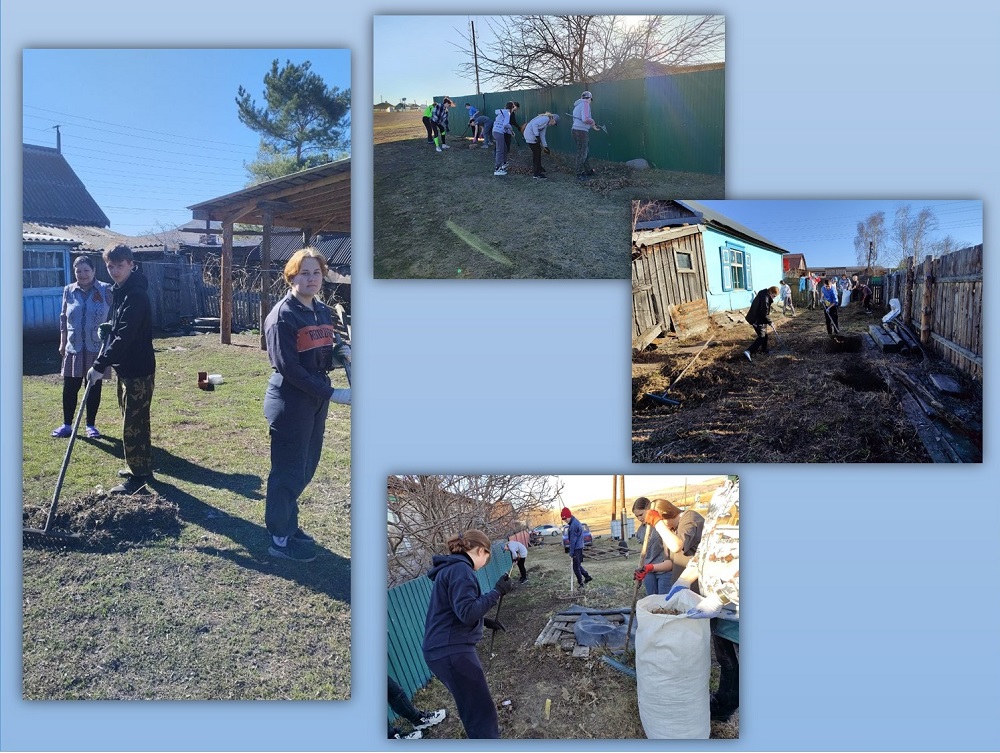 Еще одна ежегодная социальная акция «Чистый двор», проводилась социальными работниками с помощью мини-бригад «Тимуровец», состоящими из учащихся средних и старших классов школ района. Ребята из с.Саянск, с.Новая Сыда, с.Кортуз помогали в уборке приусадебных участков получателям социальных услуг.
