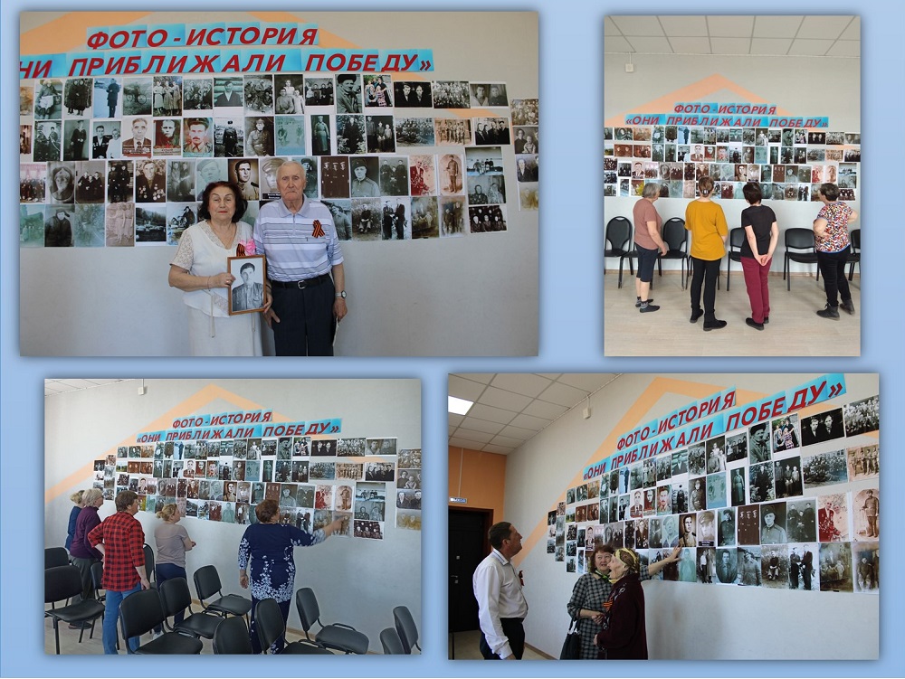 Второй год подряд заведующими отделений и социальными работниками оформляется фото-история «Они приближали победу», созданная фотографиями получателей социальных услуг и их родственниками, которые пережили не простое военное время. На ней представлены фотографии военных и послевоенных лет.
