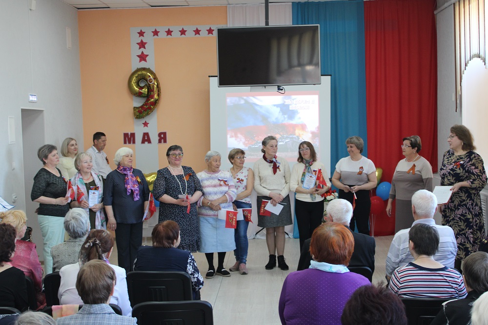 Говоря сегодня о Великой Победе, мы не смогли обойти стороной то, что происходит сейчас в нашей стране. Никто из нас и не подозревал до каких масштабов дойдет это трагическое событие. Но мы во что бы то ни стало верим в лучшее, верим в Победу такую же Великую, как и в далеком 1945 году. На празднике чествовали женщин - «серебряных» волонтеров, которые в числе первых помогают нашим бойцам: изготавливают необходимые для бойцов вещи, собирают гуманитарную помощь. Помимо звания «серебряные» волонтёры, мы присвоили им звание – Волонтёры Победы и вручили благодарственные письма.