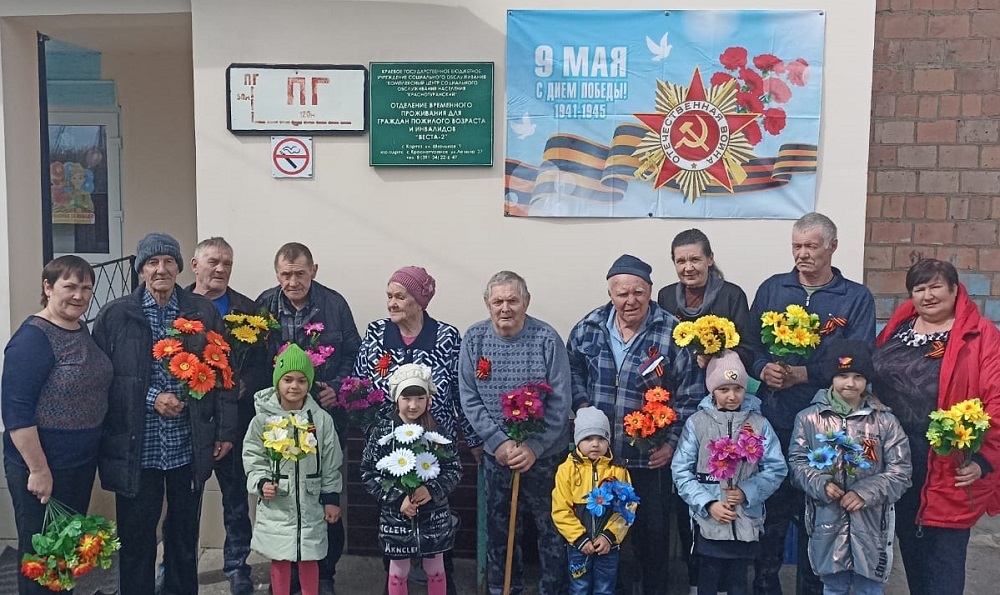 Праздничная программа была организована и в отделении временного проживания для граждан пожилого возраста и инвалидов: вечер военной песни с участием детей-волонтеров «Это праздник со слезами на глазах», музыкальная программа с участием коллектива Кортузского СДК «А песня ходит на войну», информационный час с участием специалиста Кортузской сельской библиотеки «Верю в полную победу. Рахманинов в Великой Отечественной войне». Также была организована фотовыставка «Этот Великий Май».