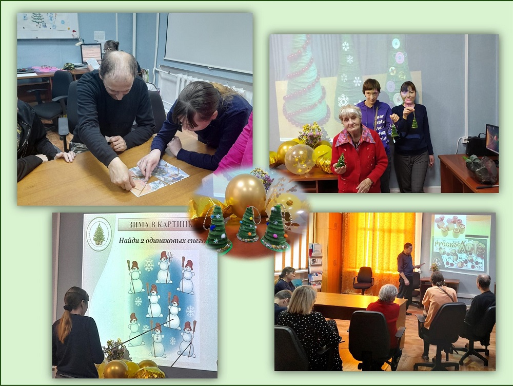 В рамках Декады инвалидов на базе социально-реабилитационного отделения для граждан пожилого возраста, инвалидов и детей с ограниченными возможностями прошел курс комплексной реабилитации для группы инвалидов с ментальными и когнитивными нарушениями. Специалисты отделения постарались заполнить эти две недели максимально. Помимо основных занятий у специалистов были организованы: познавательная программа "Своя игра: в гостях у Зимушки-зимы", творческий мастер-класс «Праздничные елочки», экскурс в историю настольных игр и турнир по игре «Русское лото», на пятничных кулинарных занятиях готовили десерты для чаепития.
