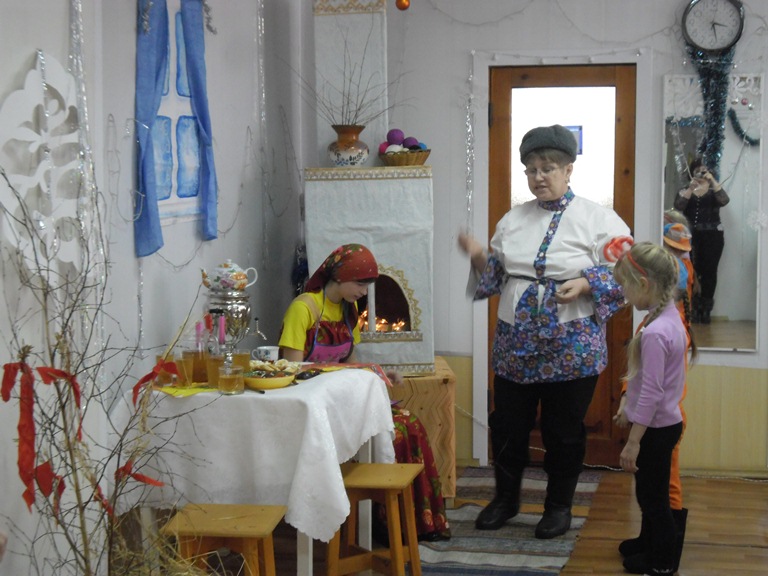 Уголок зала был декорирован под сельский дом. В нём хозяева готовились не только к встрече Рождества, выполняя все обряды и обычаи, но и к приходу колядующих.
