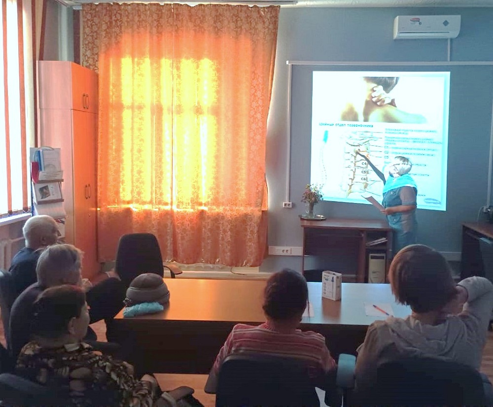 Дважды в месяц медицинская сестра по массажу Татьяна Бутенко и специалист по социальной реабилитации Елена Пантюкова организуют интересные и полезные лекции для получателей социальных услуг социально-реабилитационного отделения для граждан пожилого возраста, инвалидов и детей с ограниченными возможностями. Они обучают граждан старшего поколения, как сохранить и укрепить свое здоровье, предотвратить те или иные заболевания, а также справиться с уже имеющимися.