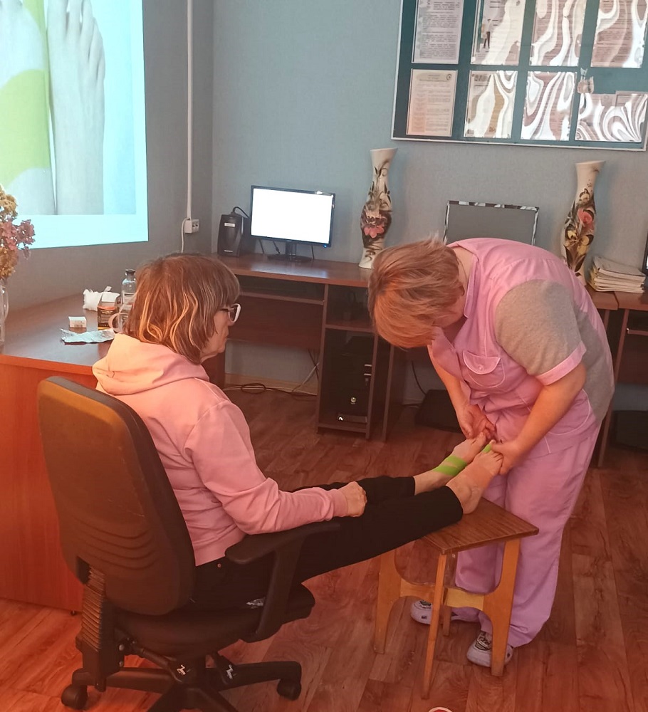 Темы для занятий специалисты подбирают, ориентируясь на категорию слушателей: их возраст, состояние здоровья, а иногда и на личные пожелания «студентов». Информация предоставляется простым и понятным для слушателей языком в сопровождении большого количества наглядного материала. С начала 2025 года были организованы занятия по темам: «Болезнь Бехтерева», «Пяточная шпора», Диссомния», «Вся правда о сосудистых звездочках» и др. Каждое мероприятие предполагает не просто передачу информации, но и практическую часть. Например, на одном из занятий о пользе ортопедических подушек при шейном остеохондрозе, были продемонстрированы виды таких подушек, где каждый смог определить, какой из вариантов им больше подходит. На занятии «Профилактика и лечение деформации стопы» участники смогли попробовать на себе технику массажа стопы, кинезиотейпирование при вальгусной деформации первого пальца стопы.
