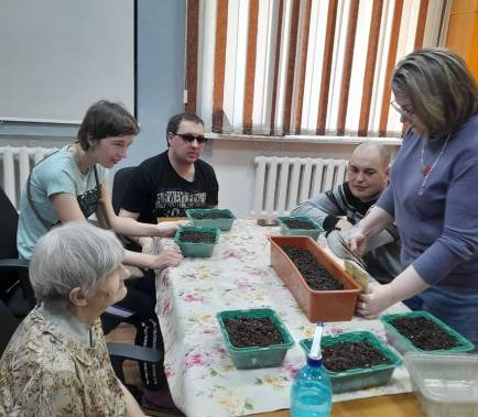 Каждый год, уже по традиции, команда Академии под руководством специалистов отделения подготавливает рассаду цветов для того, чтобы в будущем украсить клумбы Комплексного центра. Участники занятия запоминают, какие именно они сеют цветы, наблюдают за их ростом, таким образом устраивая между собой своеобразные соревнования.