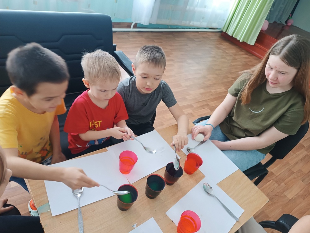 Воспитатели КГБУ СО «Комплексный центр социального обслуживания населения «Краснотуранский» социально-реабилитационном отделении для несовершеннолетних познакомили детей с историей христианского праздника, с традициями празднования Пасхи на Руси и ее символами! Воспитанники приняли участие в мастер-классе «Пасхальная корзинка», где каждый смог проявить фантазию и мастерство. Ребята с большим интересом красили яйца и еще с большим удовольствием пили чай с куличами.