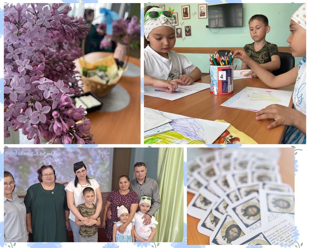 За окном цветет сирень, наполняя все своим прекрасным ароматом. В честь её цветения и получило свое название заседание семейного клуба «Сиреневый вечер». Второй раз в этом году специалисты отделения проводят встречу с семьями участников СВО в рамках этого клуба, и это становится уже доброй традицией. Семейный клуб стал местом, где родные и близкие бойцов, находящихся в данный момент в зоне СВО, могут поделиться своими трудностями, переживаниями, найти поддержку и понимание, почувствовать себя своим среди единомышленников. На вечере обсудили проблемы, с которыми сталкиваются семьи в обычной жизни, определили пути выхода из сложных жизненных и бытовых ситуаций. За беседой с чаем изготовили молитвы воина, которые были освящены в Церкви Вознесения Господня в Краснотуранске.