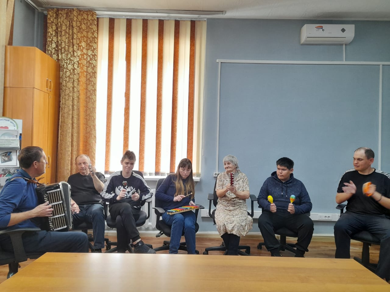 30.05.2025 г. в КГБУ СО «Комплексный центр социального обслуживания населения «Краснотуранский» в социально-реабилитационном отделении для граждан пожилого возраста, инвалидов и детей с ограниченными возможностями в рамках «Академии нескучных затей» состоялась музыкальная программа «Веселые нотки» для лиц с когнитивными и ментальными нарушениями.