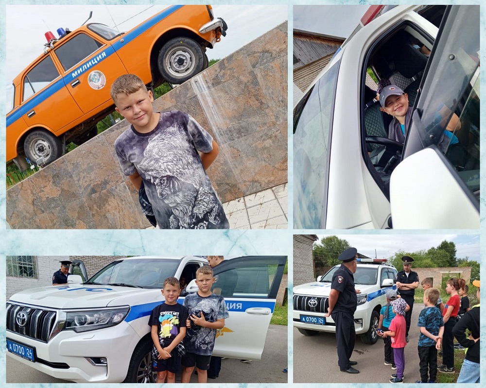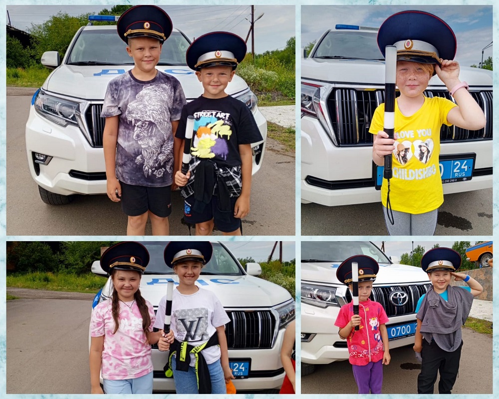 3 июля в России отмечают День ГАИ (ГИБДД). И ребята пришли в гости не с пустыми руками – они нарисовали поздравительные рисунки и вручили их сотрудникам автоинспекции в честь их профессионального праздника. Начальник ОГИБДД МО МВД России "Краснотуранский" капитан полиции Романенко Владислав Владимирович, гос.инспектор ПДД младший лейтенант полиции Богданов Владислав Юрьевич рассказали ребятам о своих рабочих буднях, о том, как устроен патрульный автомобиль и для чего нужен инспектору жезл.