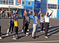Следующим пунктом программы стали велогонки, конечно только для тех, кто смело владеет транспортом. Гимнастические упражнения с палками под руководством инструктора по физической культуре Терентьевой Натальи Владимировны оказались доступны всем.