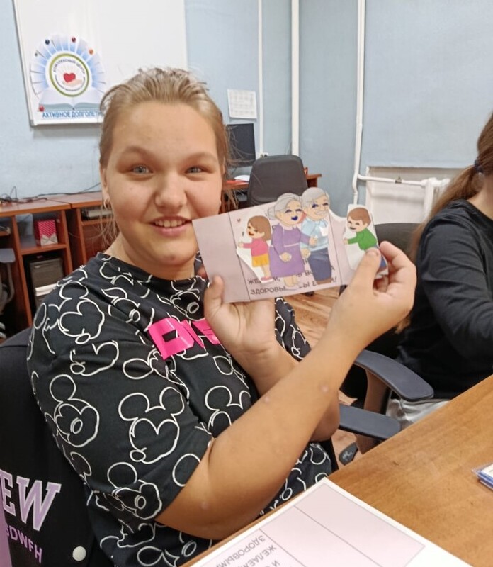 Несовершеннолетние получатели социальных услуг также не остались в стороне. Они создали поздравительную видеооткрытку с теплыми и добрыми пожеланиями для самых уважаемых и мудрых – людей старшего поколения. На творческом мастер-классе изготовили яркие открытки "Мои Бабушка и Дедушка самые любимые", во время работы над которыми говорили о семейных традициях, вспоминали и делились интересными смешными случаями из жизни.
