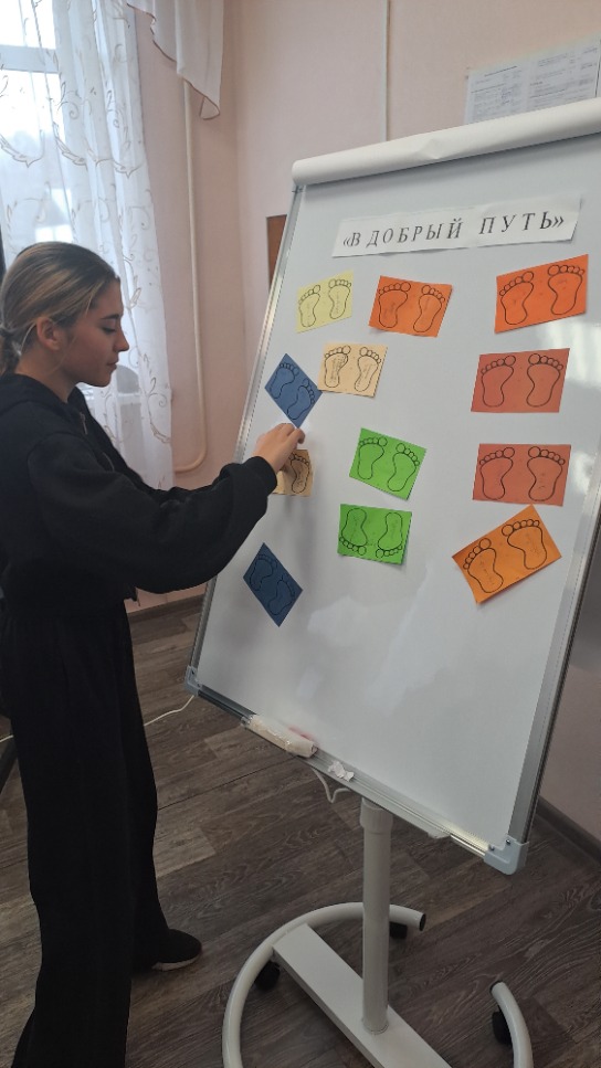 В заключительном упражнении «В добрый путь» ребята написали на карточках в виде человеческого следа добрые пожелания всем детям земного шара.