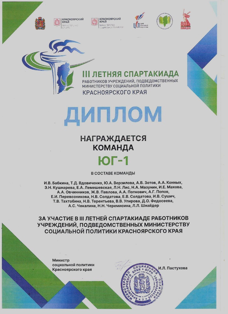 Специалисты КГБУ СО «Комплексный центр социального обслуживания населения «Краснотуранский»: Терентьева Наталья Владимировна, Попкович Алёна Александровна, Шнайдер Людмила Леонидовна в составе команды "ЮГ-1" совместно с коллегами с южных территорий Красноярского края продемонстрировали отличный командный дух и активное участие во всех состязаниях.