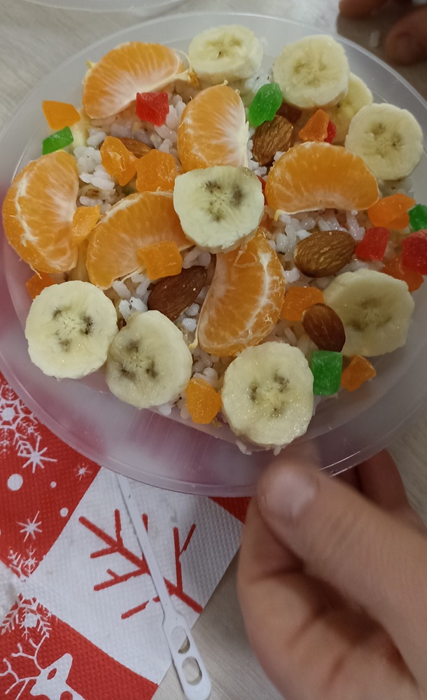 Главным событием дня стало совместное приготовление «сочива» – традиционного рождественского блюда, символизирующего единство и благополучие. Под чутким руководством сотрудников библиотеки и воспитателя дети с азартом смешивали зёрна отваренного риса, добавляя сладкий мёд, ароматные орехи и сухофрукты. Каждый этап приготовления сопровождался рассказами о значении «сочива», о его роли на праздничном столе и о том, как важно делиться добром и теплом с близкими.