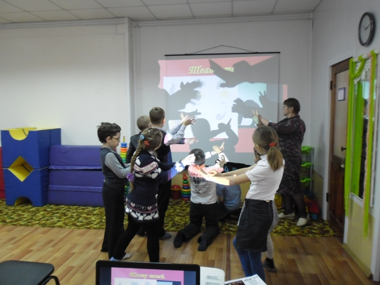 Речь о театре началась с его истории. Театр – это всегда чудо. Быть актером, человеком, творящим это чудо, пусть даже на маленькой скромной сцене – что может быть увлекательней? Поэтому ребята, присутствующие на мероприятии, с удовольствием рассказывали истории с помощью жестов и мимики. Учились передавать образы персонажей с помощью выразительных пластических движений, воображения и фантазии. Очень интересные представления можно было увидеть в театре теней. В этом театре, с помощью падающей тени, разыгрывались различные представления. А чтобы быть хорошими зрителями, дети познакомились с правилами поведения в театре.