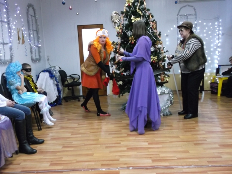 Мероприятие «Чудеса у новогодней елки» подготовлено по мотивам сказки 12 месяцев. Дети вместе со своими родителями попали в новогоднюю сказку. Одевшись потеплее, участники бала отправились вместе с Настенькой в настоящий лес к 12 месяцам за подснежниками, которых встретили у Новогоднего костра. Костёр развели на игровой площадке возле здания Комплексного центра. 12 месяцами выступили студенты из Южного аграрного техникума, водили хоровод вокруг костра, среди глубоких сугробов ребята помогали Настеньке собирать подснежники. Апрель подарил волшебное колечко, с помощью которого Дед Мороз со Снегурочкой отыскали новогодние подарки. Вернувшись на бал к Новогодней ёлке, дети встретились с символом года – Петушком и его злейшими врагами Лисой Алисой и Котом Базилио, но как всегда в хороших сказках всё закончилось отлично.