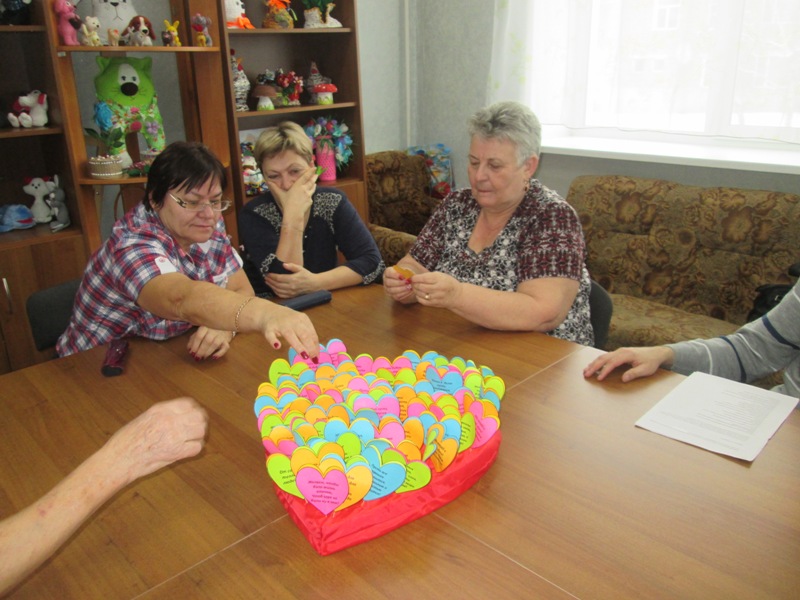 Социальная акция «Горячие сердца». Специалистами социально-реабилитационного отделения совместно с молодыми инвалидами посредством компьютерных программ были созданы шаблоны в виде сердец, которые позже были объединены в одно большое Горячее сердце. Каждый желающий вытягивал любое понравившееся сердечко с теплыми, а главное искренними пожеланиями счастья, любви и добра.