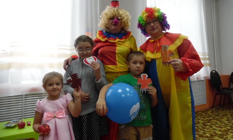 Клоуны создали атмосферу праздника и подарили детям хорошее настроение и подарочки.